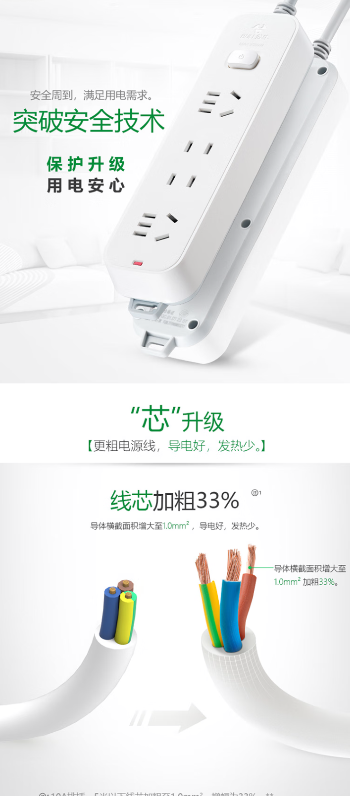 当前位置:首页 > 建材布草、厨房设备-插座 > 公牛(BULL)插座/插线板/插排/排插/接线板/宿舍家用桌面拖线板 3C认证 4位总控开关全长1.8米 GN-B3220